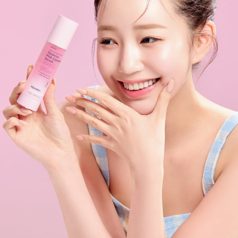 Intensywnie nawilżające serum wypełnione czterema formami kwasu hialuronowego zawiera różowe kapsułki z olejkiem, które pękają w kontakcie ze skórą, uwalniając nawilżające ją i nadające jej blask składniki odżywcze.